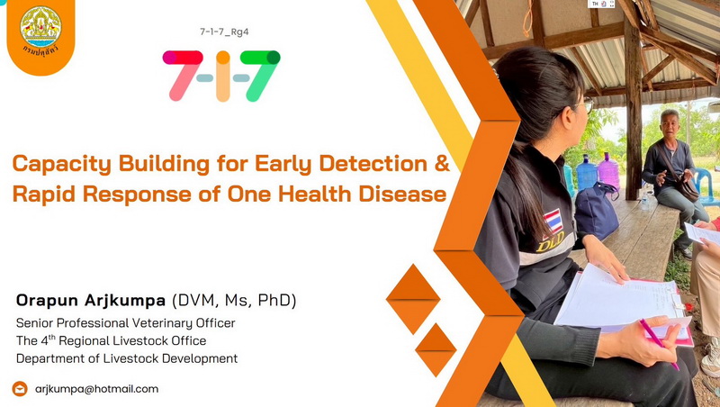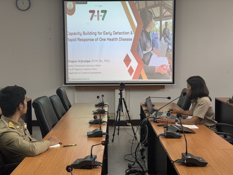 วันที่ 27 ตุลาคม 2568 นางสาวเยาวนิตย์ บุรีรักษา มอบหมายให้เจ้าหน้าที่ส่วนสุขภาพสัตว์และส่วนมาตรฐานการปศุสัตว์ สำนักงานปศุสัตว์เขต 4 ร่วมประชุมคณะกรรมการดำเนินงานโครงการความร่วมมือระหว่างกรมปศุสัตว์ ประเทศไทย และศูนย์ควบคุมและป้องกันโรคแห่งชาติ ประเทศสหรัฐอเมริกา (CDC) ครั้งที่ 1/2568 ผ่านระบบการประชุมทางไกล (Zoom meeting) จัดโดยกองความร่วมมือด้านการปศุสัตว์ระหว่างประเทศ ซึ่งในการประชุมครั้งนี้มีนายสัตวแพทย์บุญญกฤช ปิ่นประสงค์ รองอธิบดีกรมปศุสัตว์ เป็นประธาน โดยมีวัตถุประสงค์เพื่อติดตามความสำเร็จของการดำเนินโครงการความร่วมมือฯ ดังกล่าว ซึ่งตัวแทนของสำนักงานปศุสัตว์เขต 4 ได้มีการนำเสนอผลการดำเนินงานโครงการย่อยที่ได้รับทุนสนับสนุนจากโครงการความร่วมมือระหว่างกรมปศุสัตว์ ประเทศไทย และศูนย์ควบคุมและป้องกันโรคแห่งชาติ ประเทศสหรัฐอเมริกา ปีที่ 5 คือ โครงการเสริมสร้างศักยภาพของเครือข่ายสุขภาพหนึ่งเดียวในการตรวจจับและการตอบสนองอย่างรวดเร็วต่อโรคระบาดสัตว์ ร่วมด้วย