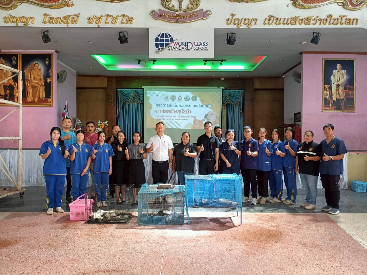 วันที่ 28 ตุลาคม 2568 ปศุสัตว์จังหวัดหนองคาย มอบหมายให้เจ้าหน้าที่กลุ่ม พัฒนาสุขภาพสัตว์ ร่วมกับสำนักงานปศุสัตว์อำเภอโพนพิสัย ออกให้บริการผ่าตัดทำหมันสุนัขและแมวพร้อมทั้งฉีดวัคซีนป้องกันโรคพิษสุนัขบ้า ภายใต้โครงการ สัตว์ปลอดโรค คนปลอดภัย จากโรคพิษสุนัขบ้า ตามพระปณิธาน ศาสตราจารย์ ดร.สมเด็จเจ้าฟ้าฯ กรมพระศรีสวางควัตน วรขัตติยราชนารี ณ โรงเรียนกุดบงพิทยาคาร ตำบลกุดบง อำเภอโพนพิสัย จังหวัดหนองคาย ผลการดำเนินงานผ่าตัดทำหมันสุนัขและแมว จำนวน 23 ตัว แบ่งเป็น สุนัข จำนวน 3 ตัว เพศผู้ 1 ตัว เพศเมีย 2 ตัว แมว จำนวน 20 ตัว เพศผุู้ 3 ตัว เพศเมีย 17 ตัว และฉีดวัคซีนป้องกันโรคพิษสุนัขบ้า จำนวน 30 ตัว แบ่งเป็นสุนัข 10 ตัว และแมว 20 ตัว