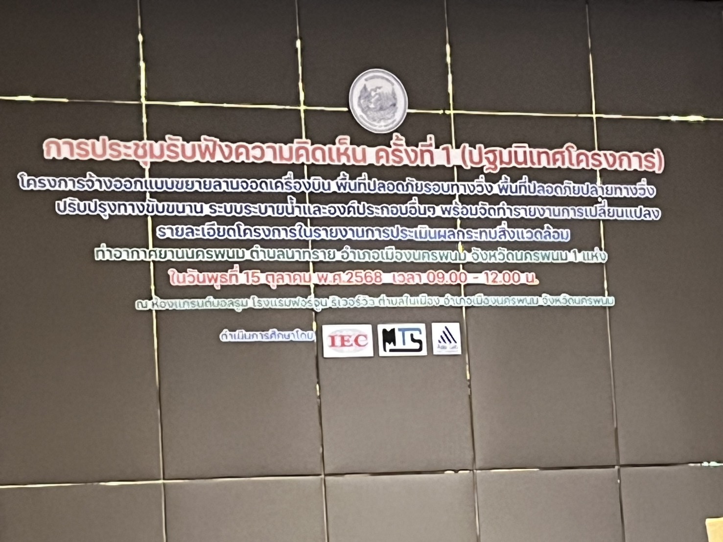 เข้าร่วมการประชุมรับฟังความคิดเห็น ครั้งที่ 1 โครงการจ้างออกแบบขยายลานจอดเครื่องบิน พื้นที่ปลอดภัยรอบทางวิ่ง พื้นที่ปลอดภัยปลายทางวิ่ง ปรับปรุงทางขับขนาน ระบบระบายน้ำ และองค์ประกอบอื่นๆ ท่าอากาศยานนครพนม ณ โรงแรมฟอร์จูน ริเวอร์วิว ต.ในเมือง อ.เมือง จ.นครพนม