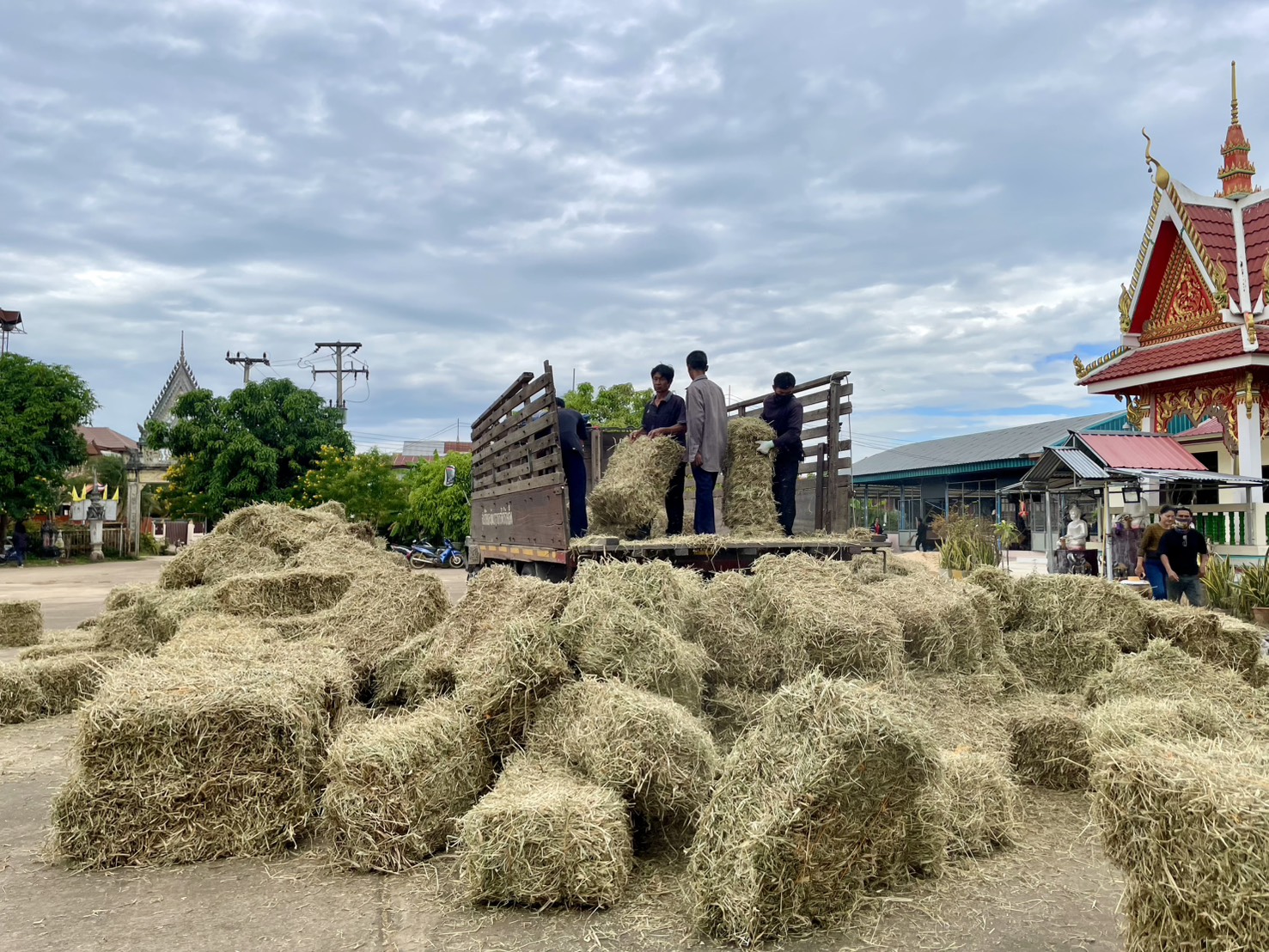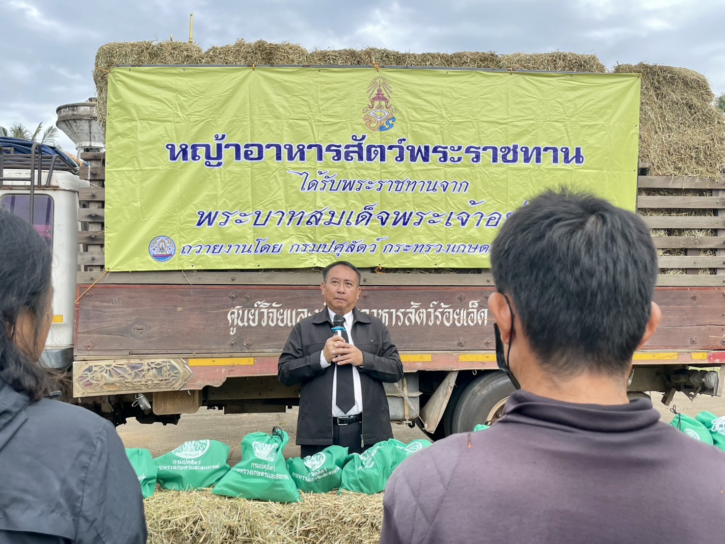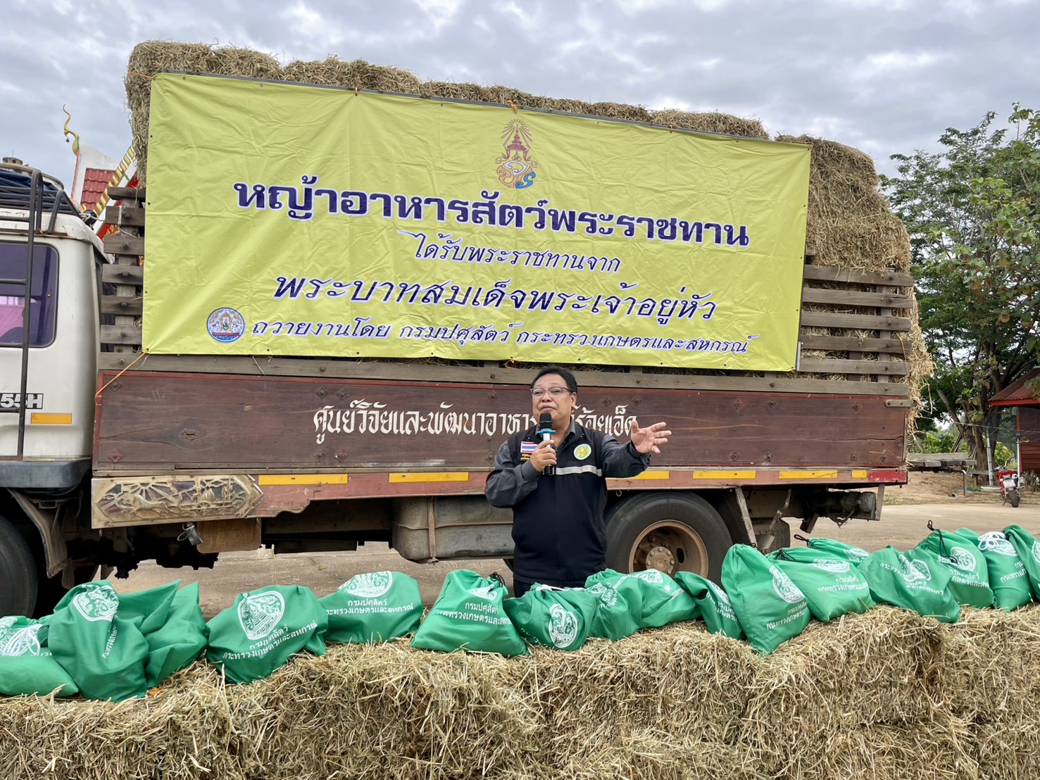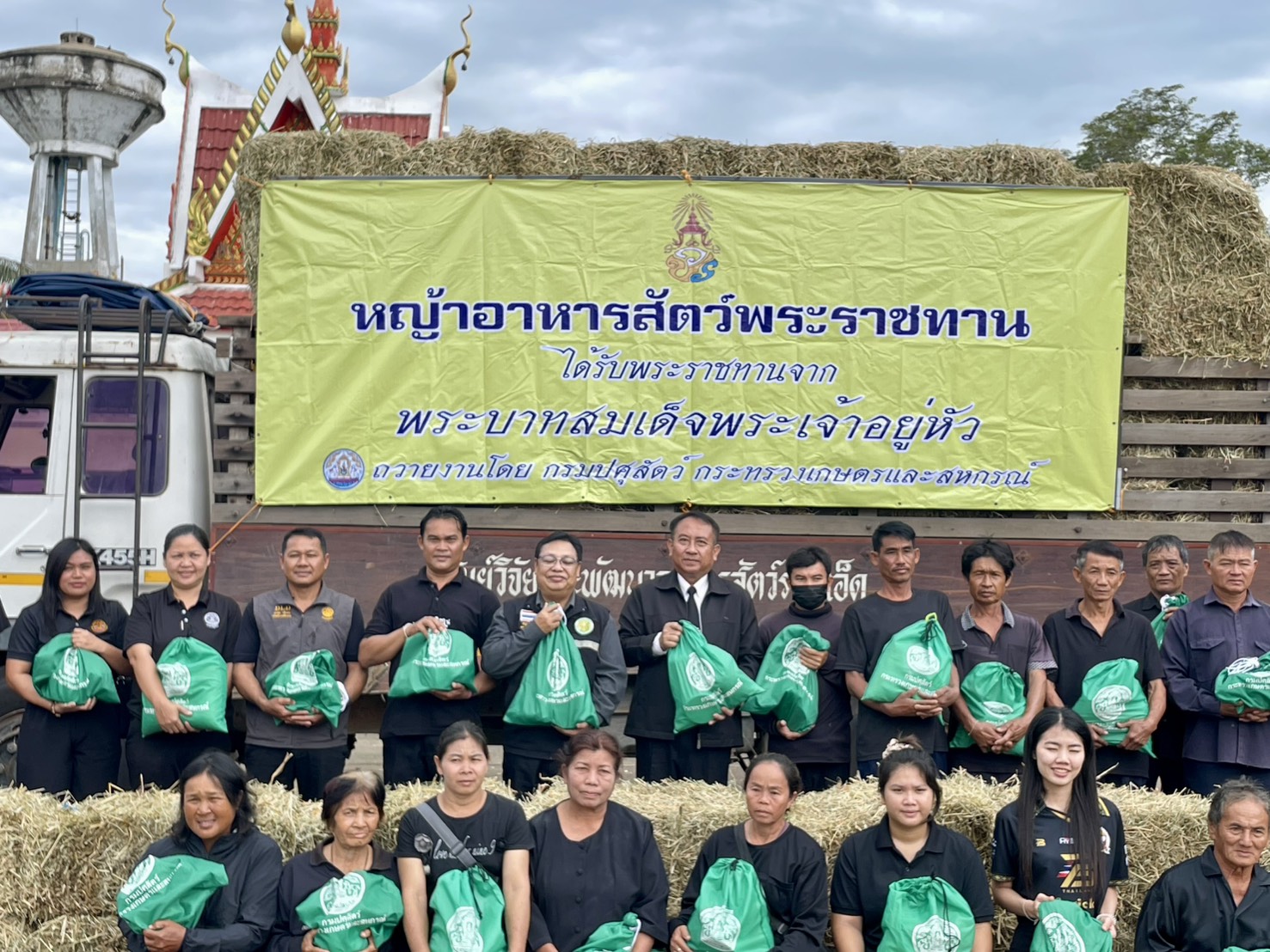 วันที่ 29 ตุลาคม 2568 นายอำนาจ มะธิปิไข ปศุสัตว์จังหวัดร้อยเอ็ด พร้อมด้วยศูนย์วิจัยและพัฒนาอาหารสัตว์ร้อยเอ็ด กลุ่มยุทธศาสตร์และสารสนเทศการปศุสัตว์ และสำนักงานปศุสัตว์อำเภอทุ่งเขาหลวง มอบหญ้าอาหารสัตว์พระราชทานให้กับเกษตรกรผู้เลี้ยงสัตว์ ในพื้นที่หมู่ 6 ตำบลบึงงาม อำเภอทุ่งเขาหลวง จังหวัดร้อยเอ็ด เพื่อให้ความช่วยเหลือเกษตรกรผู้เลี้ยงสัตว์ที่ประสบปัญหาอุทกภัยลำน้ำชีเอ่อล้นตลิ่งเข้าท่วมพื้นที่การเกษตรและพื้นที่เลี้ยงสัตว์ โดยได้มอบเสบียงอาหารสัตว์พระราชทาน เป็นหญ้าแห้งอัดฟ่อน จำนวน 200 ฟ่อน และถุงยังชีพสำหรับสัตว์ จำนวน 26 ชุด ซึ่งมีเกษตรกรได้รับผลกระทบด้านปศุสัตว์ เกษตรกรจำนวน 26 ราย โคและกระบือจำนวน 82 ตัว ณ วัดสว่างดอนแก้ว ตำบลบึงงาม อำเภอทุ่งเขาหลวง จังหวัดร้อยเอ็ด