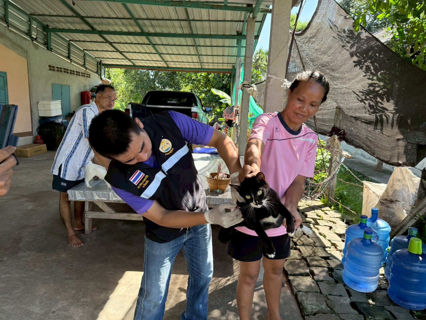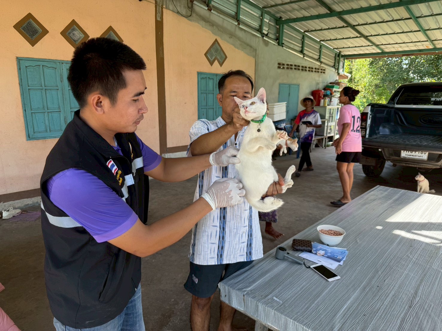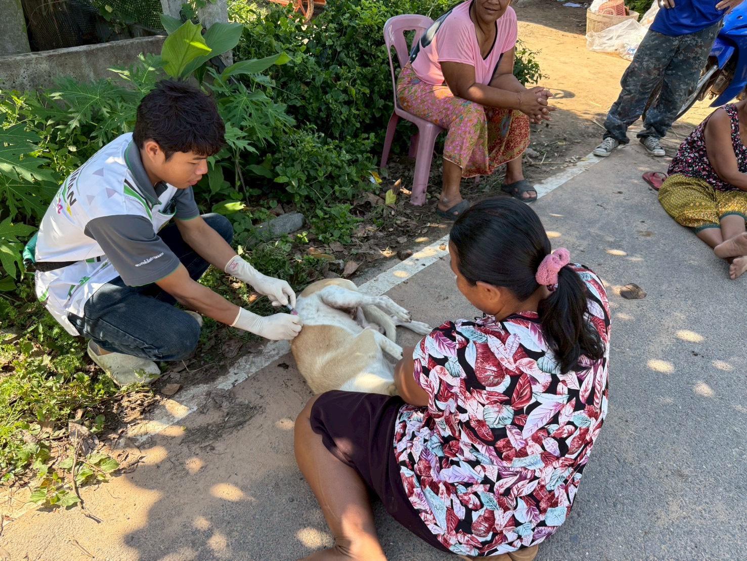 วันที่ 16 ตุลาคม 2568 นายอำนาจ มะธิปิไข ปศุสัตว์จังหวัดร้อยเอ็ด มอบหมายให้สำนักงานปศุสัตว์อำเภอเกษตรวิสัย ร่วมกับผู้นำชุมชน อาสาปศุสัตว์ ฉีดวัคซีนป้องกันโรคพิษสุนัขบ้าเข็มกระตุ้นในพื้นที่เกิดโรคพิษสุนัขบ้า ณ พื้นที่หมู่ 6 ตำบลดงครั่งใหญ่ อำเภอเกษตรวิสัย จังหวัดร้อยเอ็ด โดยมีสุนัขได้รับวัคซีนจำนวน 117 ตัว แมวได้รับวัคซีนจำนวน 56 ตัว รวมสัตว์ได้รับวัซีนทั้งหมด 173 ตัว